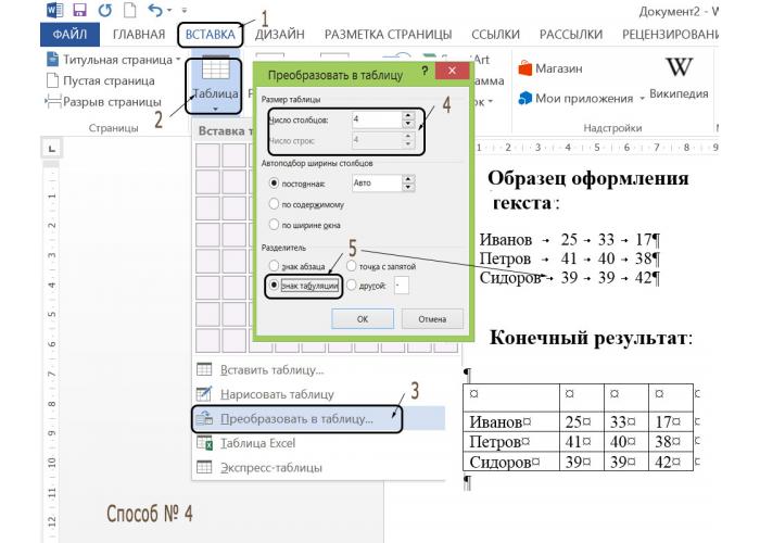 - Выбрать нужный вариант таблицы с учетом количества строк и столбцов (цифра 2).